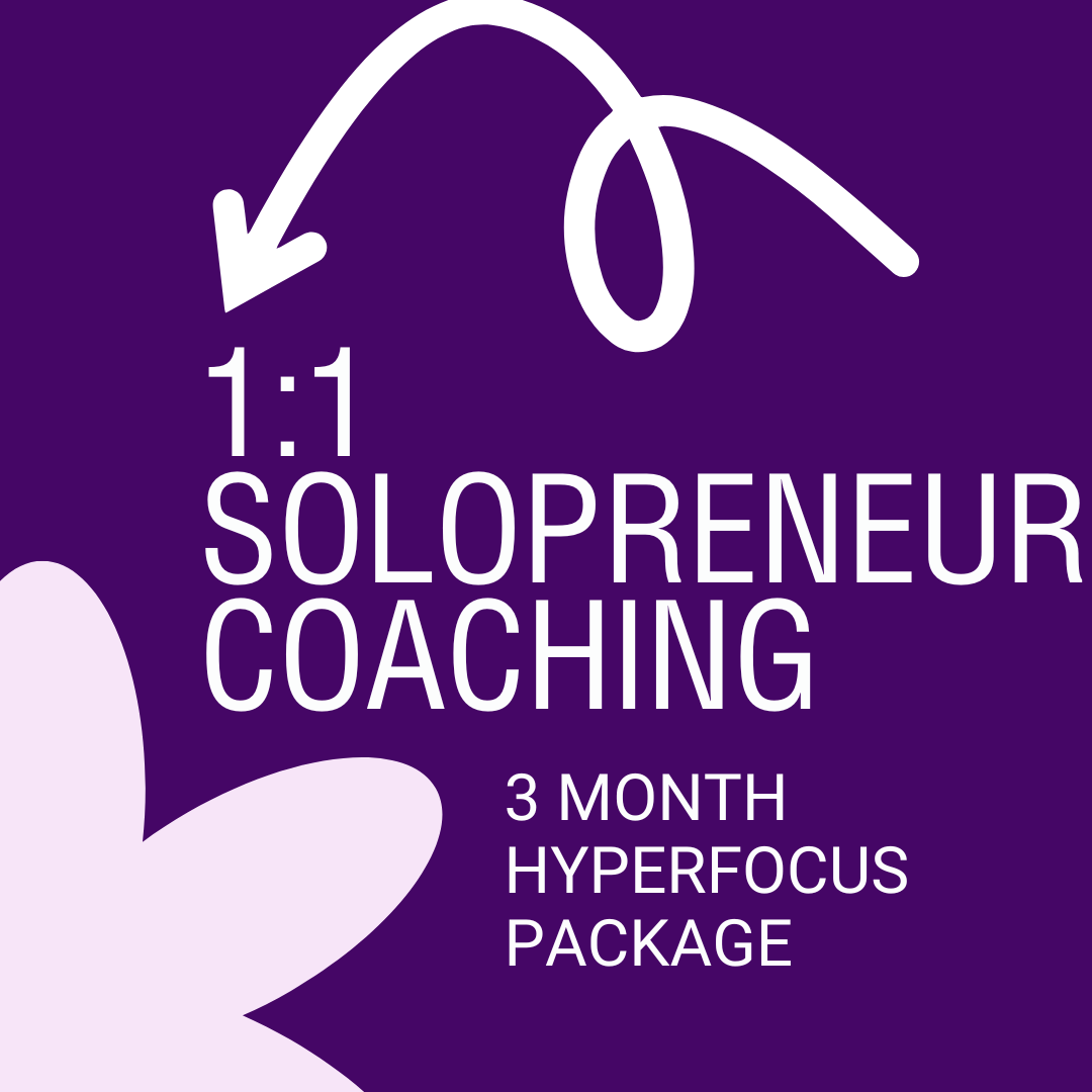 Want a get shit done option? Here you go. This option is perfect for busy solopreneurs who can only meet for 1 hr a week but want to do some fun coworking. For 3 months we will have guided body-doubling and co-working sessions (for 60 mins each week) to work on whatever you want. If you need specific coaching around building your business, I will work with you for the duration of those 3 months until you have 3 things: